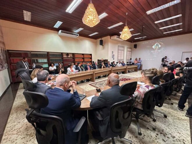 Com a presença dos três poderes do Estado, o governo do Acre, representado pela Secretaria de Assistência Social e Direitos Humanos (SEASDH), participou nesta quinta-feira, 9, do lançamento da campanha Nunca é Tarde, promovida pelo Poder Judiciário, e da assinatura da carta de compromisso institucional para ações de enfrentamento a crimes sexuais, cometidos contra crianças e adolescentes, assim como contra mulheres e pessoas LGBTQIA+, realizado no Palácio da Justiça, em Rio Branco.