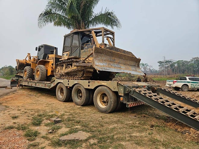 Equipamentos usados em atividades ilegais de desmatamento são confiscados durante operações ambientais no Acre. Foto: Divulgação/Imac