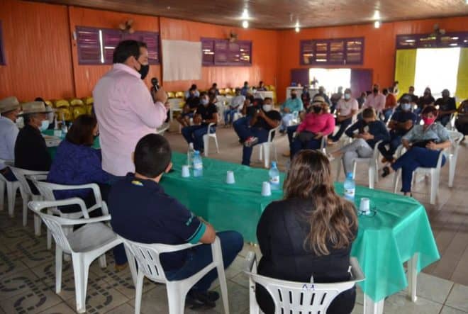 A convite do deputado estadual, Antônio Pedro, o secretário de Estado de Produção e Agronegócio do Acre, Nenê Junqueira, participou de uma reunião no sábado, 19, com moradores da zona rural do município de Xapuri. O gestor ouviu as reivindicações dos produtores que moram na região, principalmente em relação as melhorias no trecho que dar acesso ao lugar, e questões relacionadas a regularização fundiária.