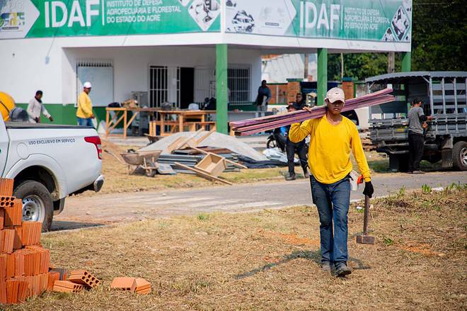 O espaço está recebendo equipes de limpeza e técnicos em infraestrutura pela Secretaria de Obras Públicas (Seop) e do Departamento de Estrada de Rodagens do Acre (Deracre), além dos expositores e órgãos parceiros, que organizam seus estandes e estruturas de concreto para receber o público.