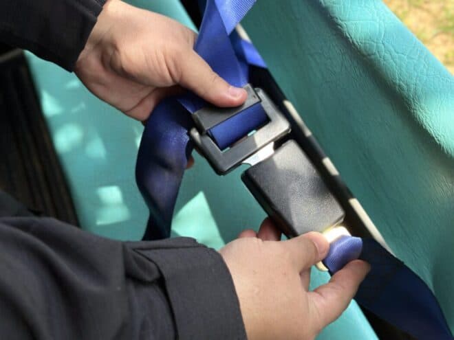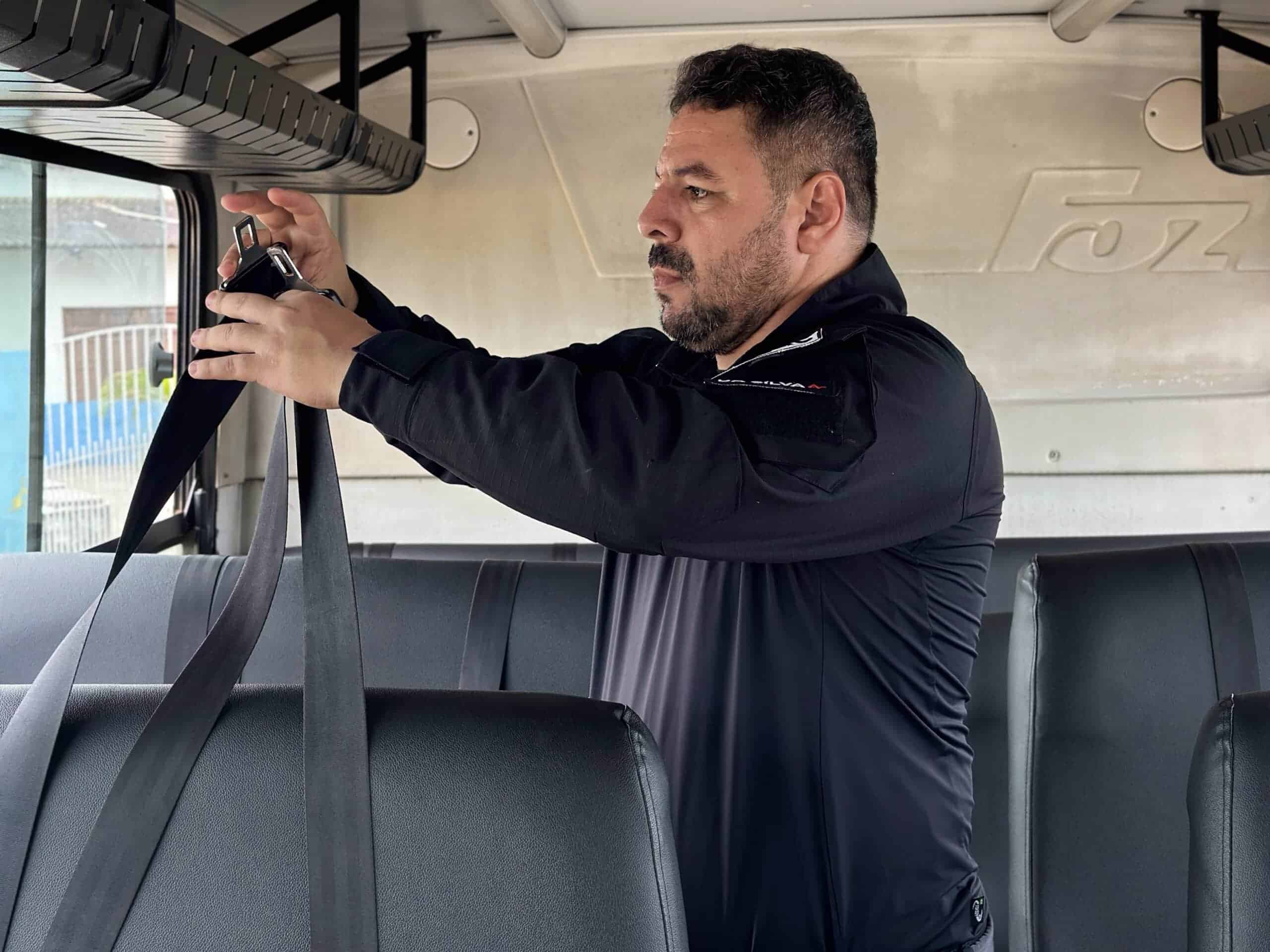 Inspeção incluiu a checagem de itens obrigatórios de segurança, como cintos e estrutura dos assentos. Foto: Zeh Luiz Maciel