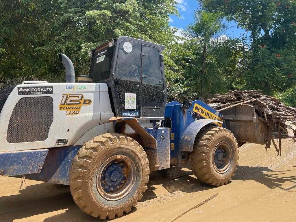 Máquinas do Deracre trabalham na retirada de entulhos e limpeza da cidade. Foto: AscomDeracre
