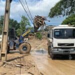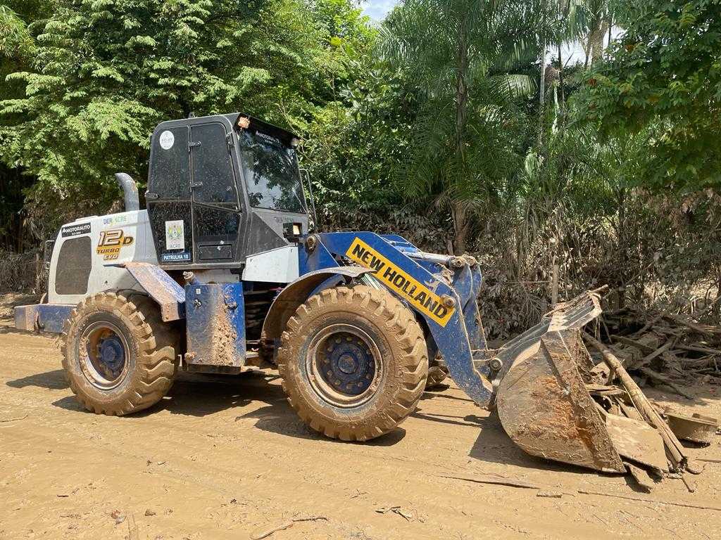 Nesta sexta-feira, 31, o governo do Estado, por meio do Departamento de Estradas de Rodagem do Acre (Deracre) e em apoio à Prefeitura de Brasileia, auxilia na operação de limpeza após a enchente no município.