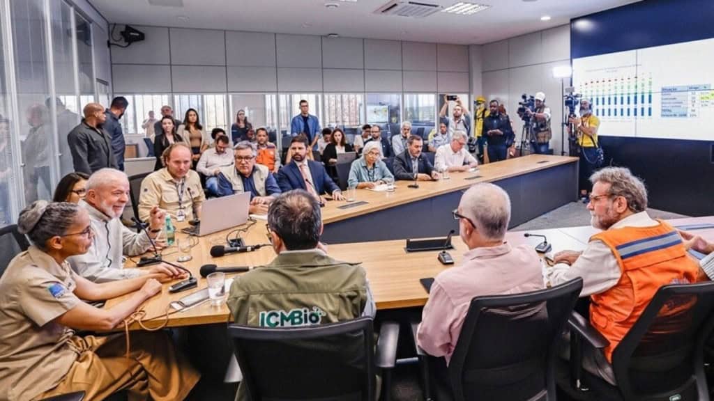 Também compareceram ao local o ministro das Relações Institucionais, Alexandre Padilha, o presidente do Instituto Brasileiro do Meio Ambiente e dos Recursos Naturais Renováveis (Ibama), Rodrigo Agostinho, e o diretor-geral da PF, Andrei Rodrigues. Todos permaneceram cerca de uma hora na sala de situação, onde é possível acompanhar em tempo real as queimadas em diferentes regiões do País, via imagens de satélite.