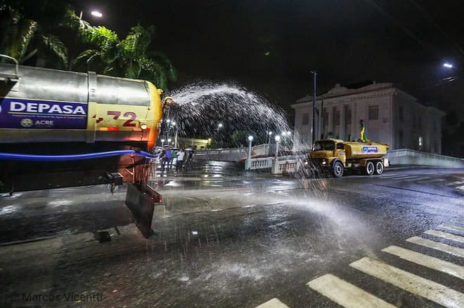O Governo do Acre, por meio do Departamento Estadual de Água e Saneamento (Depasa) e Corpo de Bombeiros deu início na madrugada deste sábado, 28, à desinfecção dos espaços de grande circulação de pessoas em Rio Branco. O objetivo é manter os locais livres do coronavírus, causador da Covid-19.