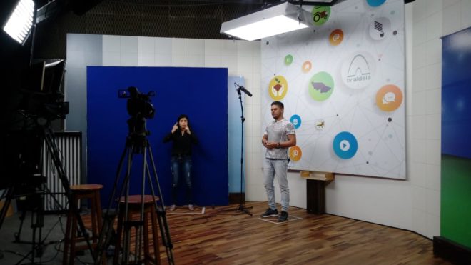Gravação das vídeoaulas no estúdio da TV Aldeia Foto: Cedida