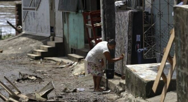 Mulher limpa colchão após enchente em Ilhéus (BA) - LAURA LOPES/AFP - 29.12.2021
