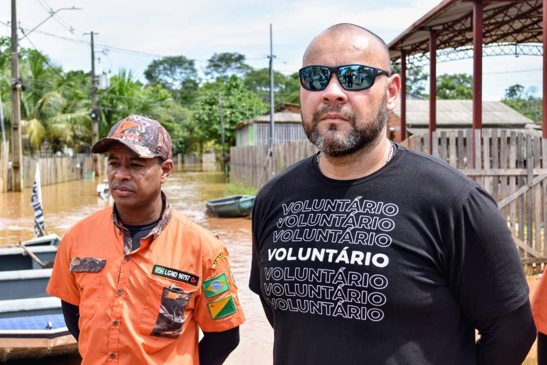 Além da atuação do poder público, a cheia também mobilizou ações solidárias da sociedade civil. No bairro Hélio Melo, famílias atingidas pela elevação dos igarapés receberam apoio de voluntários da igreja Comunidade Batista Vida (CB Vida).