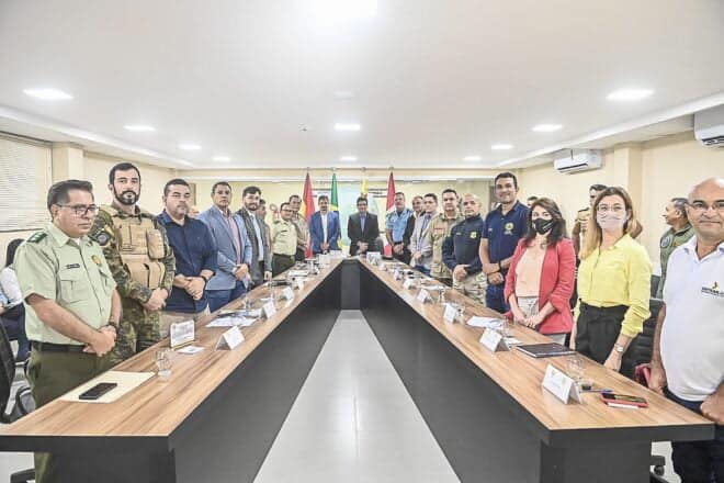 O governo do Estado participou nesta quinta-feira, 26, na sede da Secretaria de Estado de Justiça e Segurança Pública (Sejusp), de uma reunião para avaliação das operações das forças-tarefas deflagradas nas regiões do Alto e Baixo Acre, no período de 5 de abril a 23 de maio, e também para tratativas de implantação do Gabinete de Gestão Integrada e Fronteira Internacional (GGIF-I).