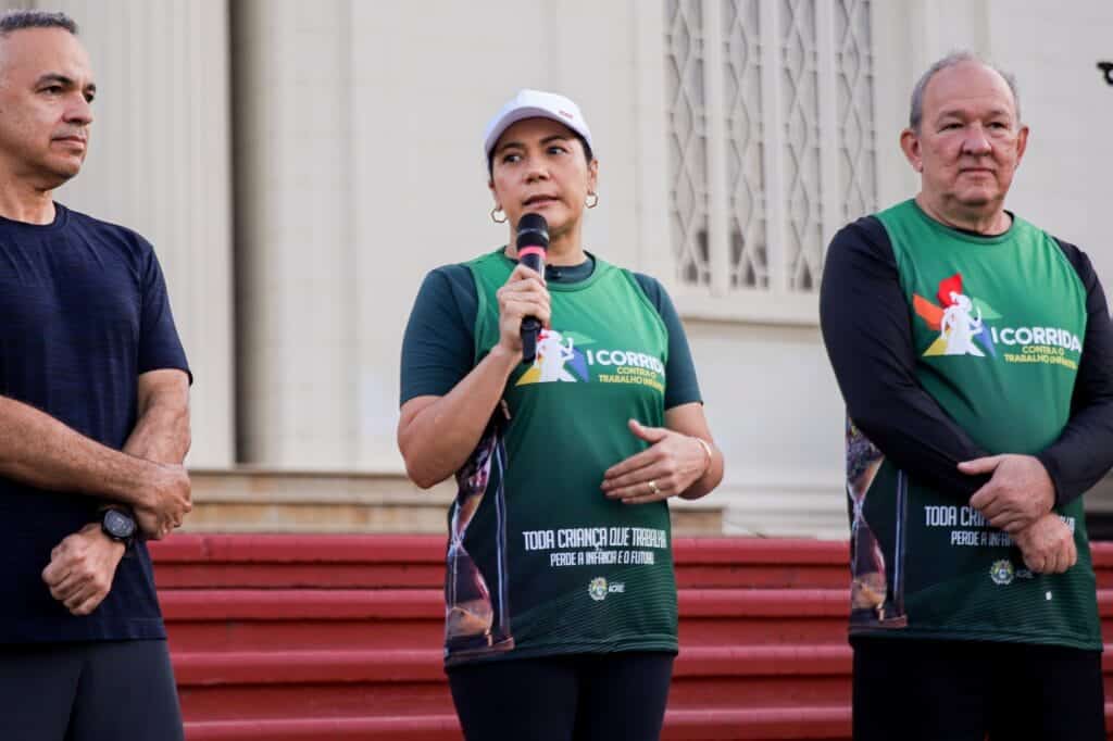 Liderada pela vice-governadora Mailza Assis, titular da Secretaria de Assistência Social e Direitos Humanos (SEASDH), a 1ª Corrida contra o Trabalho Infantil reuniu mais de 700 pessoas em um evento que uniu conscientização, saúde e solidariedade, neste domingo, 29, em Rio Branco.