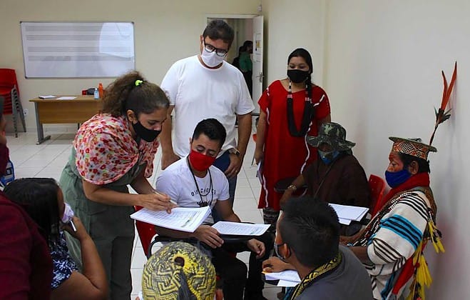Nesta quinta-feira, 29, eles construíram documentos junto com os técnicos da Secretaria de Estado de Meio Ambiente (Sema) e da Casa Civil Foto: Assessoria Sema