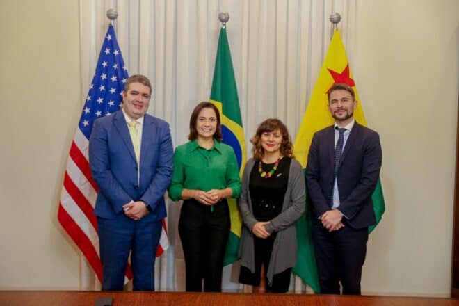Na tarde desta terça-feira, 1º, representantes do governo do Acre e da Embaixada dos Estados Unidos se reuniram no Palácio Rio Branco, na capital, para discutir as políticas públicas ambientais vigentes no estado.