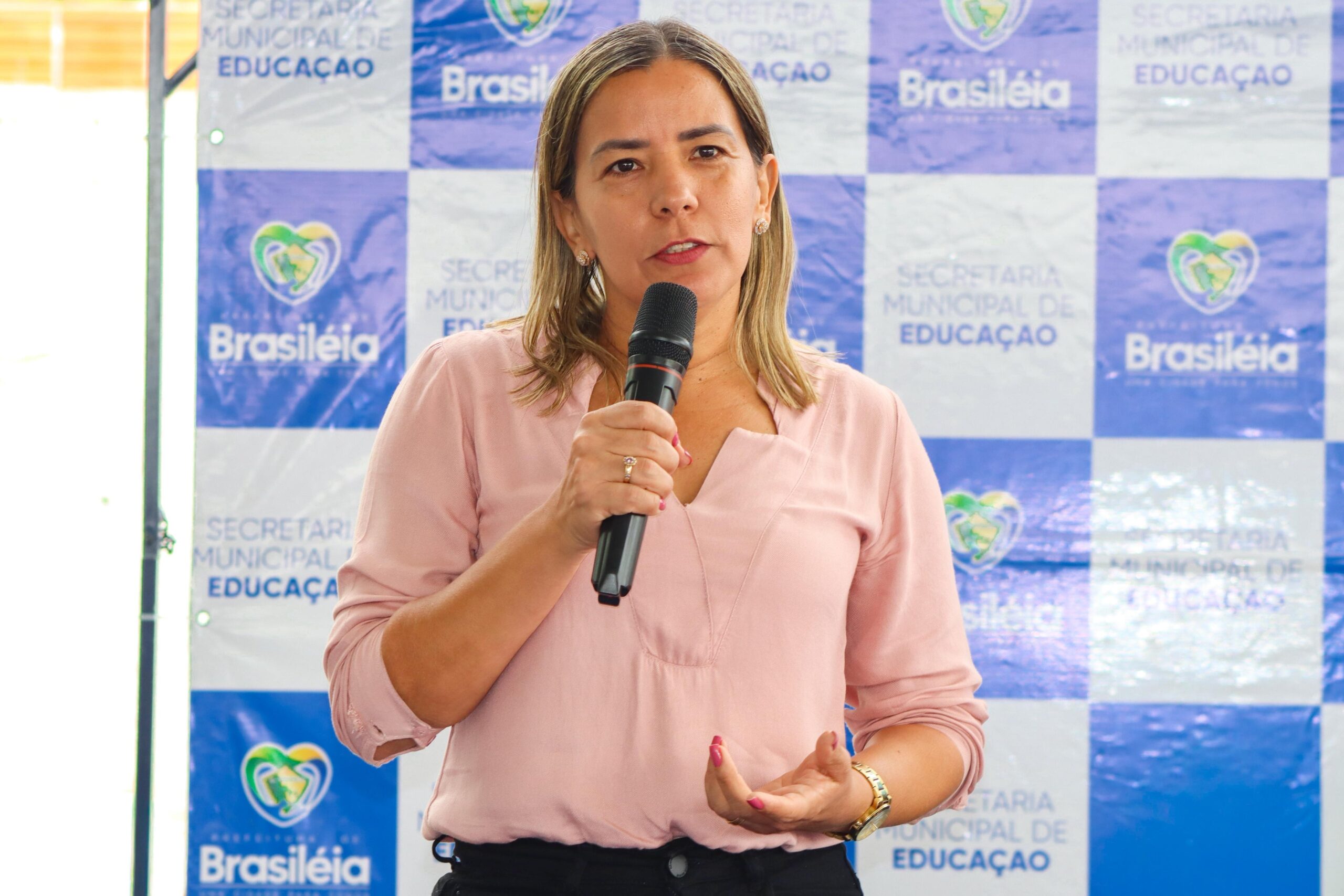 Durante o evento, a secretária apresentou a equipe pedagógica da Secretaria Municipal de Educação e o calendário do ano letivo 2026, construído em conjunto com gestores e professores da rede.