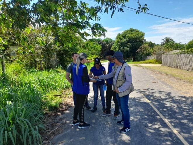 Equipe visita cada lote para preenchimento do laudo de identificação fundiária, onde é possível obter todas as informações qualitativas do beneficiário e do imóvel. Foto: cedida