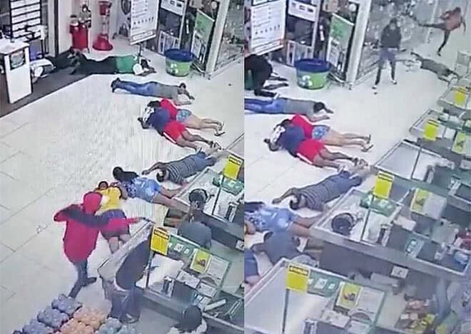 Nas imagens, é possível avistar clientes e funcionários ao chão com a chegada dos acusados. Mesmo assim, os suspeitos conseguiram fugir. Equipes da Polícia Militar continuam nas buscas aos criminosos.