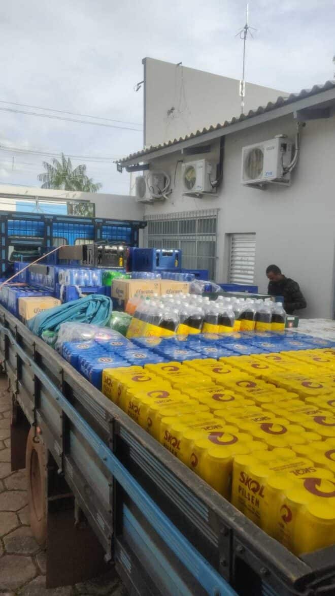 O caminhão e a carga, de grades e fardos de variadas bebidas alcoólicas, refrigerantes, energéticos, entre outros, foi encaminhada e entregue na Delegacia de Flagrantes (Defla).