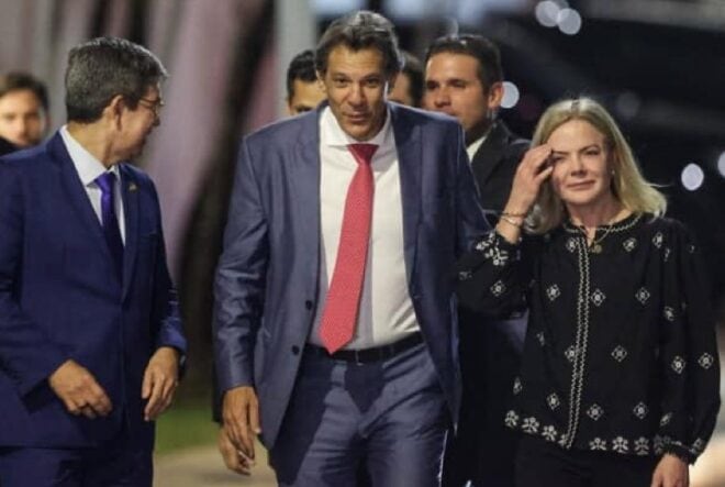 O ministro da Fazenda, Fernando Haddad, chegou às 18h05 deste domingo (8) na reunião com líderes do Congresso Nacional para discutir alternativas ao aumento do Imposto sobre Operações Financeiras (IOF). Ele chegou à Residência Oficial da Câmara dos Deputados junto com a ministra da Secretaria das Relações Institucionais (SRI), Gleisi Hoffmann.