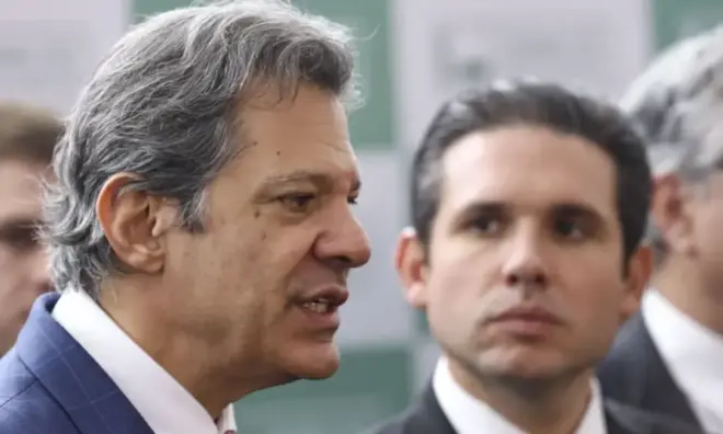 O ministro da Fazenda, Fernando Haddad, e o presidente da Câmara dos Deputados, Hugo Motta (Republicanos-PB) • Foto: Marcelo Camargo/Agência Brasil
