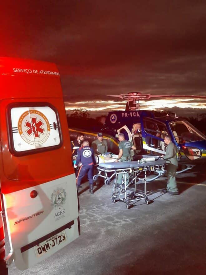 Após o resgate, o paciente está internado em Unidade de Terapia Intensiva (UTI) no Pronto-Socorro de Rio Branco.
