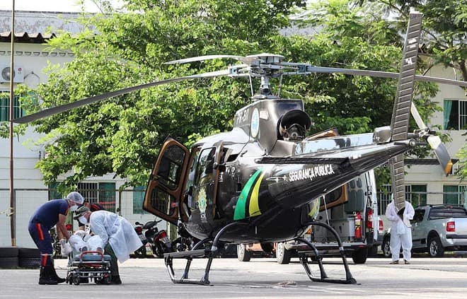 O helicóptero Harpia 4 do governo do Estado fez na tarde deste sábado, 9, o transporte do paciente, José Maria da Silva, 36 anos, com Covid 19, do município de Marechal Thaumaturgo para Cruzeiro do Sul.