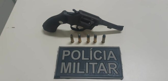 Os militares foram acionados porque uma mulher estava sendo agredida no Ramal Laranjeira, localizado no km 32 na zona rural do município. A guarnição constatou o fato e prendeu o esposo da mulher com um revólver calibre 38, com cinco munições intactas.