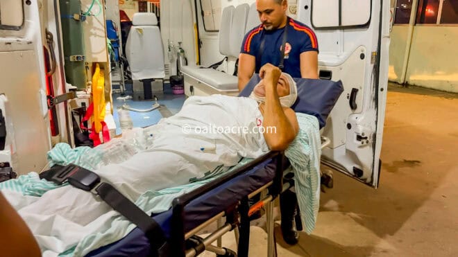 Após avaliação clínica e estabilização, José Carlos foi levado ao Hospital João Câncio Fernandes. Diante da suspeita de trauma torácico fechado — com indícios de “tórax estendido”, conforme avaliação da equipe médica —, decidiu-se pela transferência da vítima ao pronto-socorro de Rio Branco.