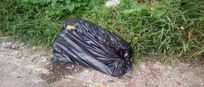 Uma das bolsa encontradas onde estava parte do corpo da mulher.