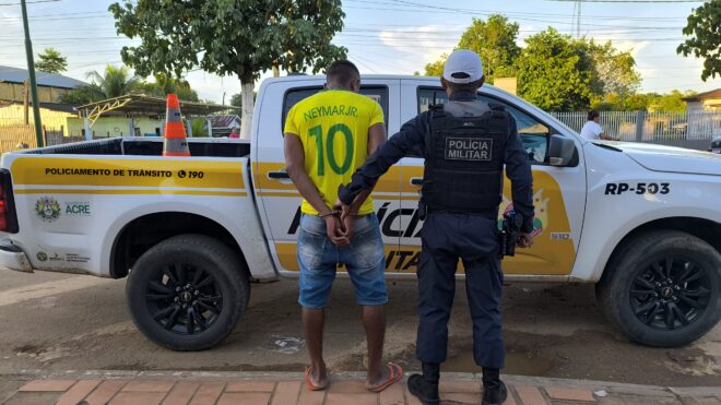Durante uma ação de rotina realizada pelo Policiamento de Trânsito do 5º Batalhão da Polícia Militar de Brasiléia, um homem foi preso na última sexta-feira, 25 de abril, após ser identificado como foragido da Justiça. A abordagem ocorreu na Rua Antônio Ribeiro, localizada no bairro Raimundo Chaar.