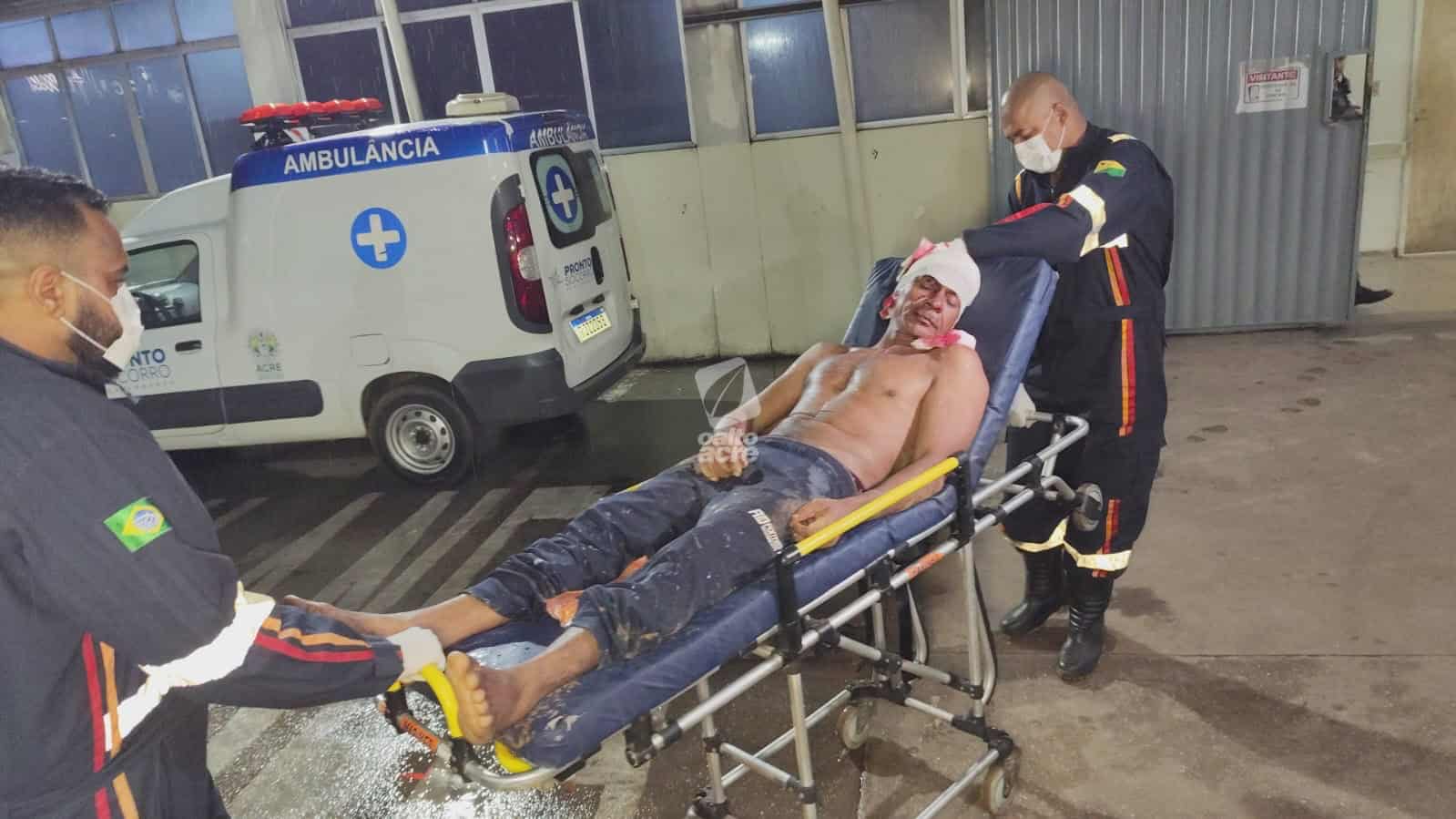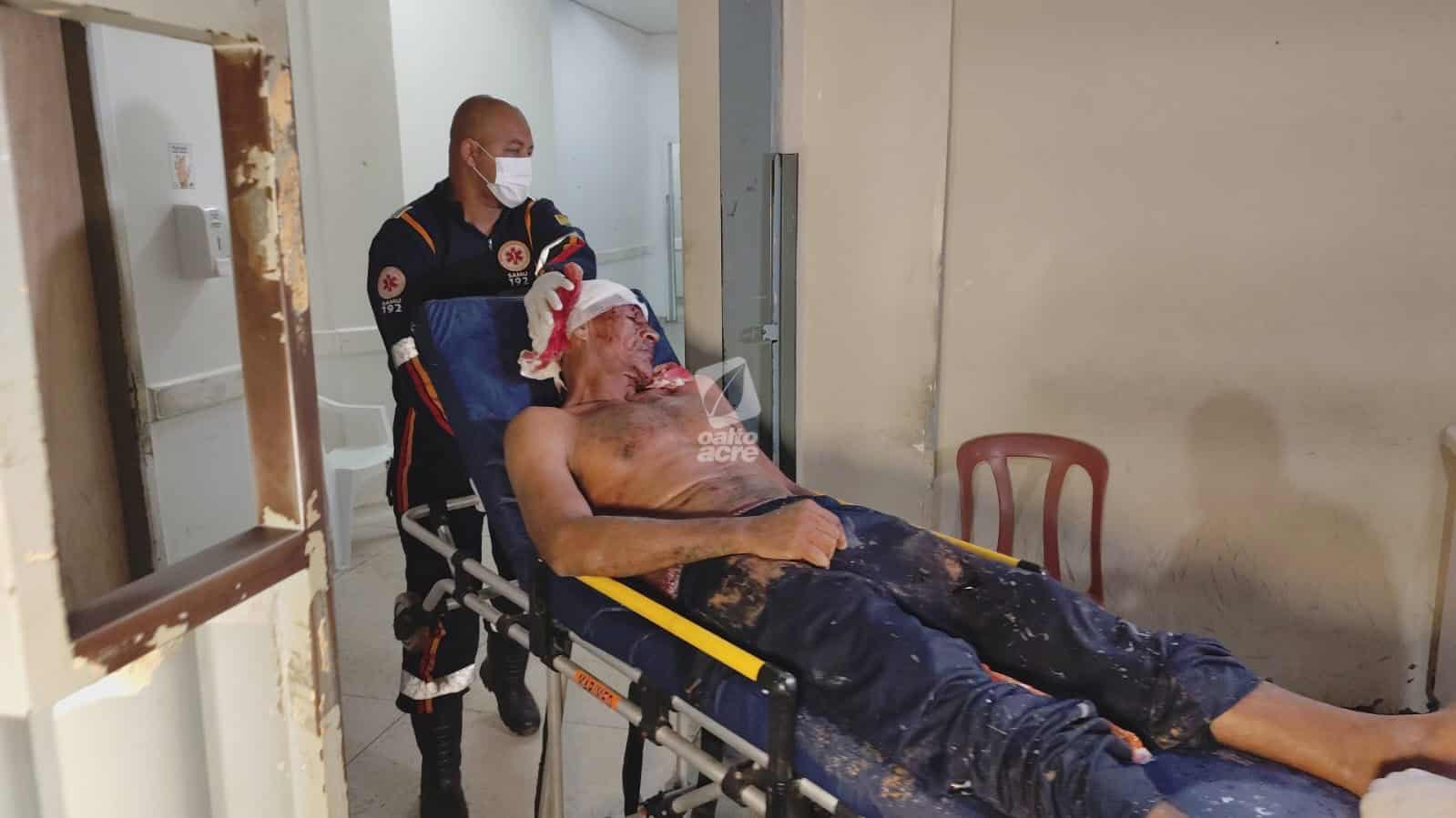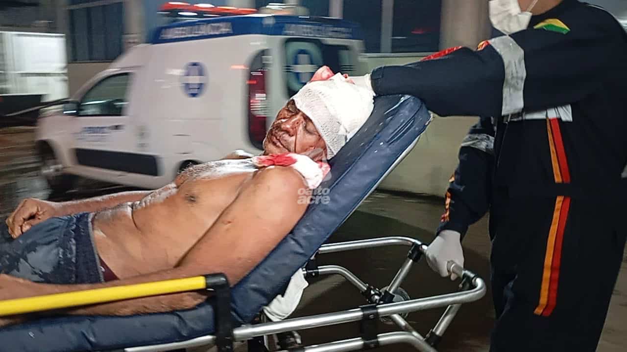 Os socorristas realizaram os primeiros atendimentos e estabilizaram a vítima, que apresentava vários cortes na cabeça e sangramento ativo. Em seguida, Cláudio foi encaminhado ao Pronto-Socorro de Rio Branco, onde permanece internado em estado estável, segundo informações da equipe médica de plantão.