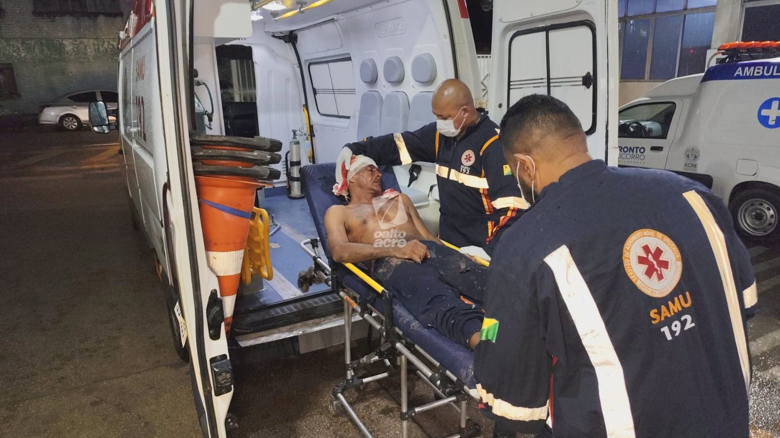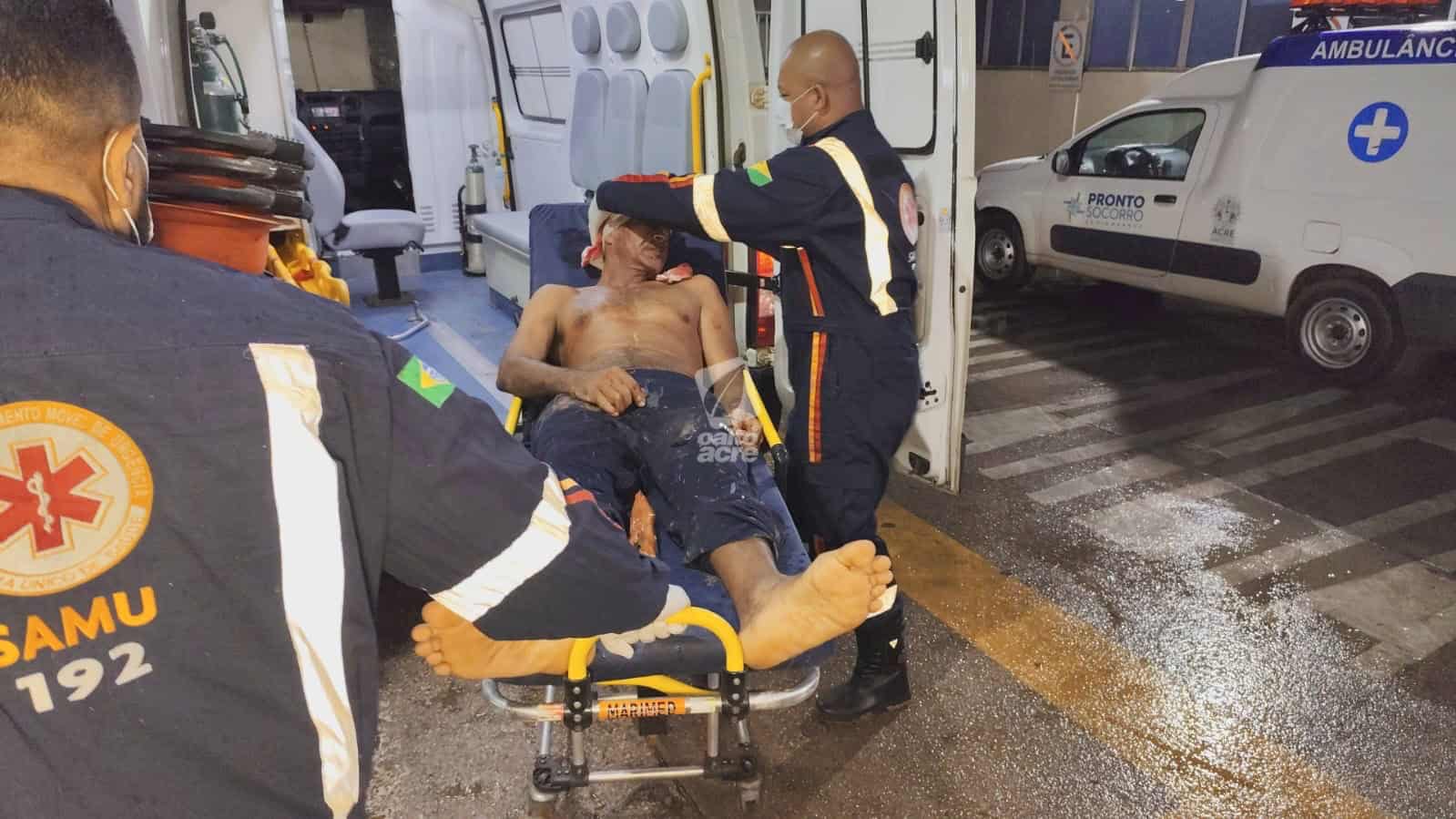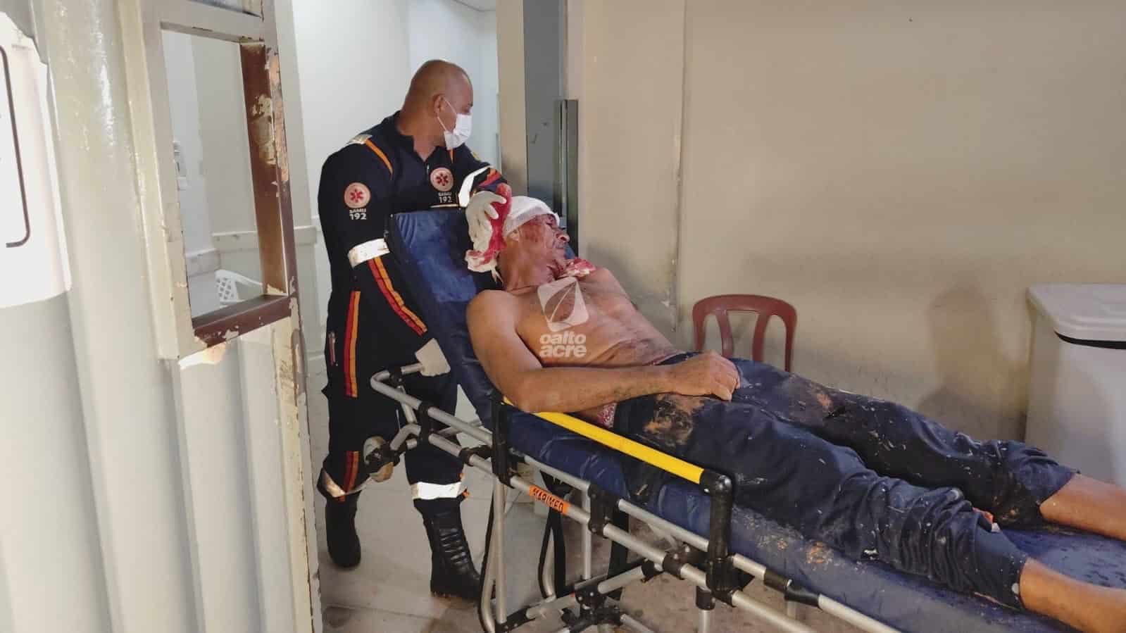 Os socorristas realizaram os primeiros atendimentos e estabilizaram a vítima, que apresentava vários cortes na cabeça e sangramento ativo. Em seguida, Cláudio foi encaminhado ao Pronto-Socorro de Rio Branco, onde permanece internado em estado estável, segundo informações da equipe médica de plantão.