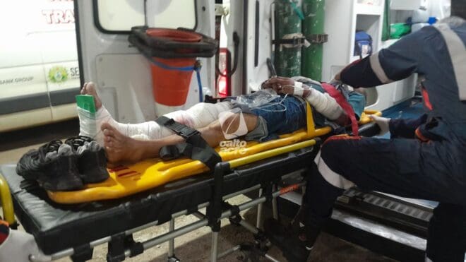 Populares que passavam pelo local acionaram o Serviço de Atendimento Móvel de Urgência (Samu), que enviou uma ambulância de suporte básico. Os paramédicos prestaram os primeiros socorros e encaminharam a vítima ao pronto-socorro de Rio Branco. Seninha sofreu um corte profundo no braço e uma fratura exposta na perna direita, mas seu estado de saúde é estável.