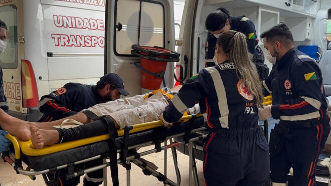 Após ser estabilizado pelos socorristas, Francildo foi encaminhado ao pronto-socorro de Rio Branco, onde permanece internado em estado grave.