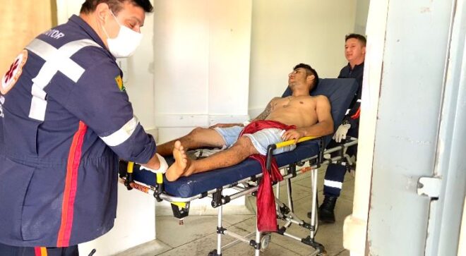 Delcivan foi estabilizado ainda no local e encaminhado ao Pronto-Socorro de Rio Branco, onde permanece sob cuidados da equipe de traumatologia.