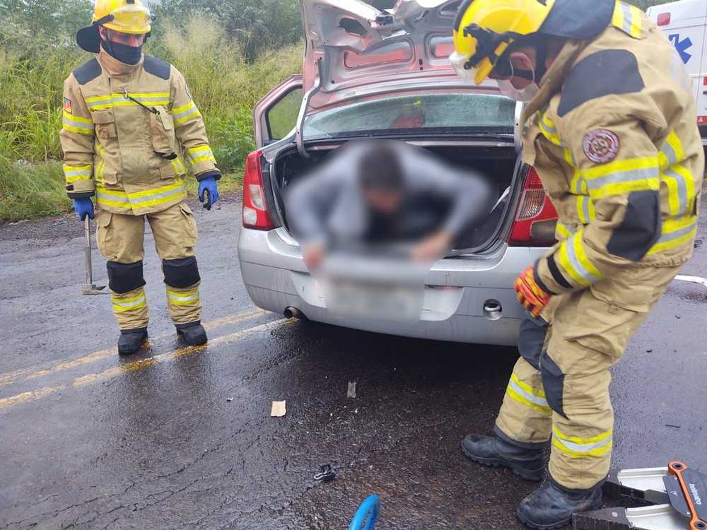 Um homem, de 25 anos, foi encontrado preso dentro do porta-malas de um carro envolvido em um acidente na ERS-122, em Farroupilha, na Serra do Rio Grande do Sul. Segundo o Comando Rodoviário da Brigada Militar (CRBM), o indivíduo estaria sendo sequestrado pelos proprietários do veículo, que acabou colidindo contra um caminhão.