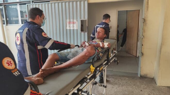 Daniel Guimarães dos Santos, de 40 anos, sofreu evisceração e precisou ser transferido ao Pronto-Socorro; autor do crime fugiu após o ataque.