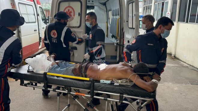 Populares encontraram o homem ferido e acionaram o SAMU, que inicialmente enviou uma ambulância de suporte básico. Como a vítima apresentava sinais de confusão mental e embriaguez, foi necessário o reforço de uma unidade de suporte avançado. Após estabilização, o homem foi encaminhado ao Pronto-Socorro de Rio Branco, onde permanece em estado de saúde estável.