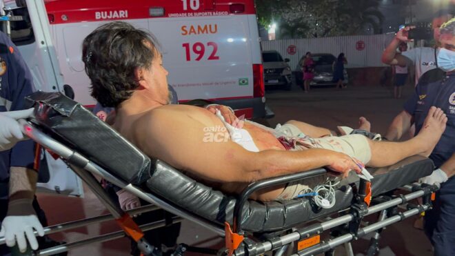 Maycon Gomes, de 45 anos, sofreu uma tentativa de homicídio na noite deste sábado (31) no bairro Esperança, em Rio Branco, após fazer uma brincadeira com seu cunhado, um policial militar. O incidente ocorreu na rua 7 de Setembro.