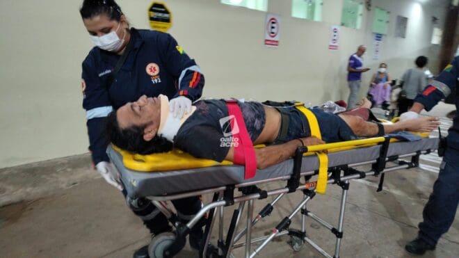 Já na delegacia, enquanto aguardava atendimento, Thiago passou mal devido à gravidade das agressões. Policiais civis acionaram o Serviço de Atendimento Móvel de Urgência (Samu), que enviou uma ambulância ao local. Com escoriações e hematomas nas costelas, pernas, joelhos e costas, ele foi estabilizado pela equipe médica e levado ao Pronto-Socorro de Rio Branco, onde segue sob cuidados no setor de traumatologia. Seu estado de saúde é estável, mas ele será submetido a exames complementares.