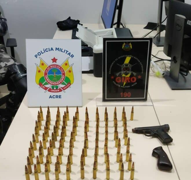 Policiais Militares do GIRO do Batalhão de Operações Especiais (BOPE) prenderam na noite desta terça-feira, 5, Edson S. Nascimento, de 28 anos, pelo crime de porte ilegal de arma de fogo. A prisão aconteceu na Travessa da Embaúba, situada no bairro Montanhês, em Rio Branco.