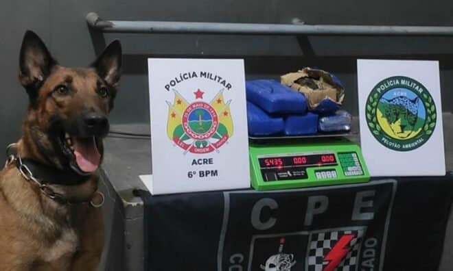Com o auxílio de um cão farejador, a Polícia Militar de Cruzeiro do Sul apreendeu nessa quarta-feira, 19, um total de 5,4 quilos de maconha tipo skunk na mochila de um homem que seguia de ônibus de Cruzeiro do Sul para Rio Branco.