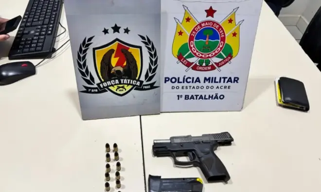 Segundo a PM, o suspeito estava em um veículo Volkswagen Virtus, de cor preta, quando foi abordado por uma guarnição. Durante a revista, os militares localizaram uma pistola calibre 9mm, modelo G2C, com um carregador e 12 munições, escondida sob o banco do motorista.