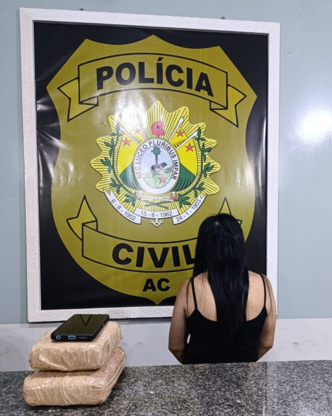 Uma mulher foi presa na noite de terça-feira (1º) suspeita de tráfico de drogas durante uma abordagem em uma van que seguia de Rio Branco para Tarauacá, no interior do Acre. Segundo informações da Polícia Civil, a suspeita transportava uma bolsa tática preta, que já havia sido identificada em levantamentos prévios como possível meio de transporte de entorpecentes.