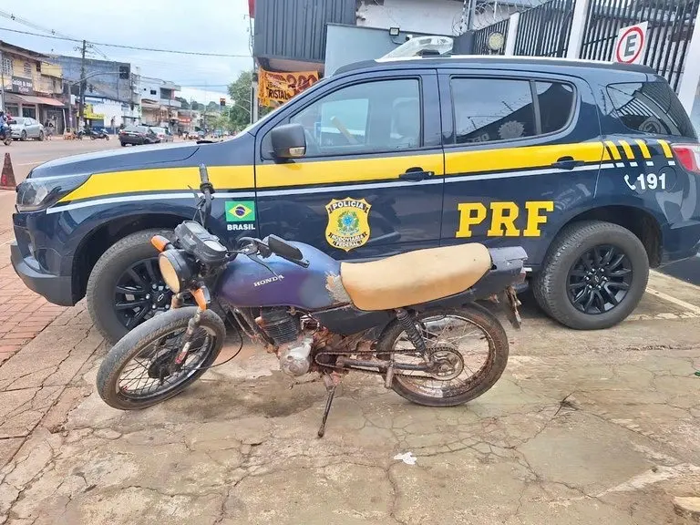 Uma motocicleta com registro de roubo foi recuperada e o condutor preso por receptação durante uma fiscalização da Polícia Rodoviária Federal (PRF) realizada na tarde da última quinta-feira (2), no km 89 da BR-317, em Senador Guiomard, interior do Acre.