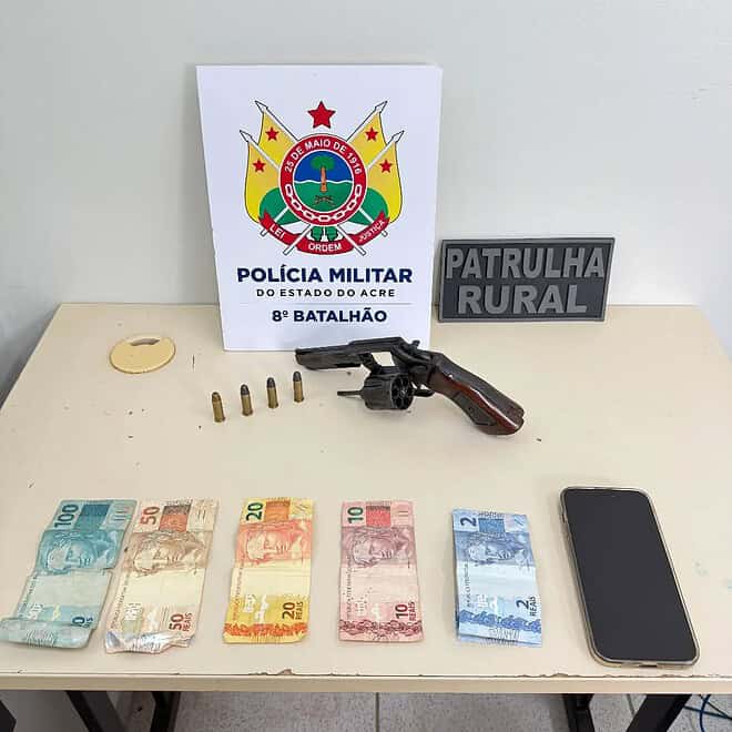 Na manhã desta quinta-feira (9), a Patrulha Comunitária Rural do 8º Batalhão de Polícia Militar (8º BPM) prendeu um homem de 32 anos por porte ilegal de arma de fogo. A ação ocorreu durante uma barreira policial na BR-364.