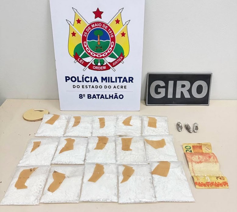 Durante patrulhamento, os policiais avistaram o suspeito carregando uma sacola suspeita. Ao perceber a aproximação da viatura, ele tentou fugir e se desfazer do material, mas foi interceptado. Na sacola, os agentes encontraram 15 pacotes de uma substância esbranquiçada, semelhante à cocaína, pesando cerca de 160 gramas, além de três trouxinhas de uma substância escura, aparentando ser maconha.