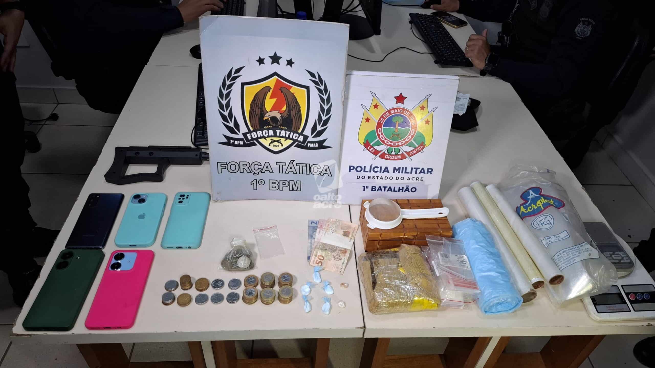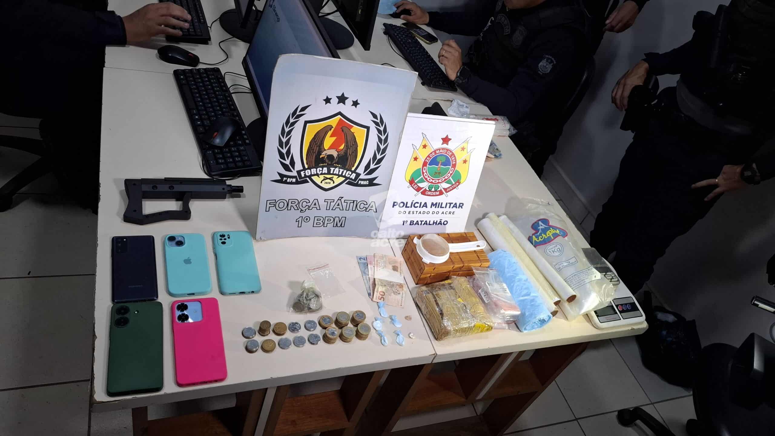 Na revista pessoal, foram encontradas porções de drogas e materiais utilizados para embalar as substâncias. O acusado recebeu voz de prisão e foi conduzido à Delegacia de Flagrantes (Defla), junto com os entorpecentes apreendidos.