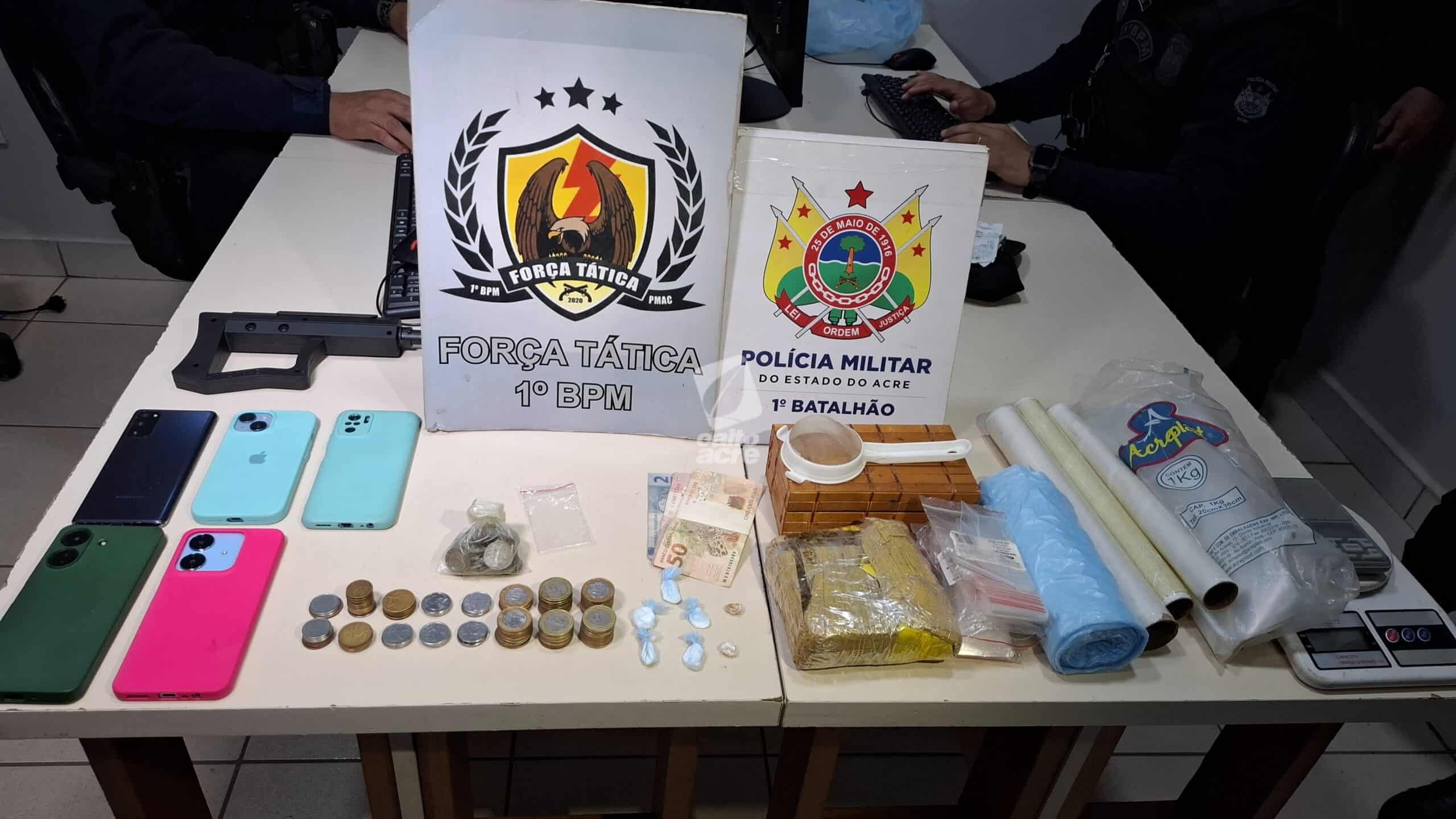 A Polícia Militar prendeu, na noite deste sábado (13), Alessandro Cavalcante Rodrigues, de 39 anos, acusado de tráfico de drogas na Rua Maria das Dores, no bairro Esperança, em Rio Branco.