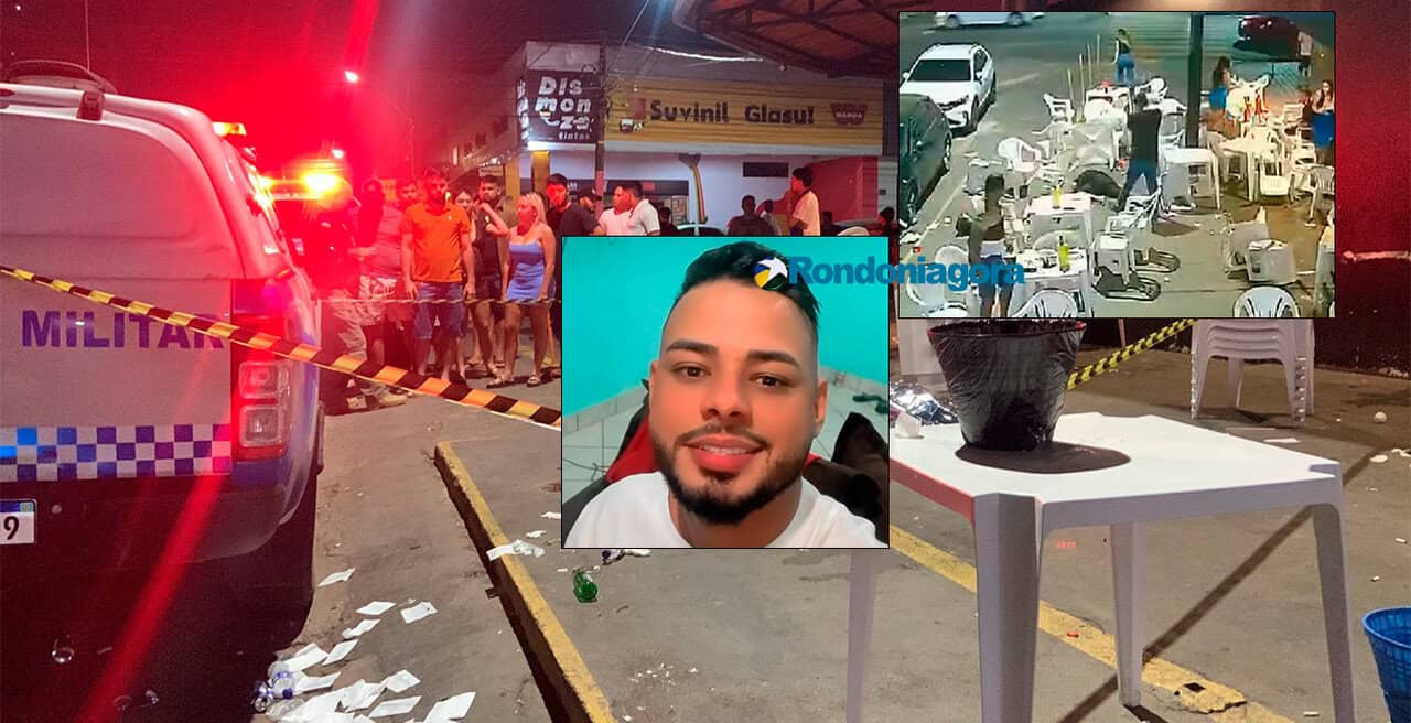 Uma das pessoas se levanta para atender o telefone. É nesse momento que o criminoso chega e de longe efetua os primeiros disparos, na frente de todas as pessoas que estavam no local.