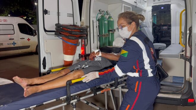 Mesmo ferida, Kátia conseguiu se levantar e correr até a casa da ex-sogra, localizada na Rua LBA, onde pediu socorro. A ex-sogra acionou imediatamente o Serviço de Atendimento Móvel de Urgência (Samu), que enviou uma equipe de suporte básico ao local. A vítima apresentava sangramento ativo na face, suspeita de lesão em vaso sanguíneo de grande calibre, e foi levada ao Pronto-Socorro de Rio Branco em estado estável, mas com necessidade de avaliação médica urgente.