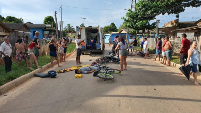 Com o impacto, o condutor da outra moto placa NN 7532, identificado por Antônio Francisco S. Pereira, de 30 anos, ficou ferido no chão. Por coincidência, a garupa que sofreu ferimentos leves, seria sua enteada.